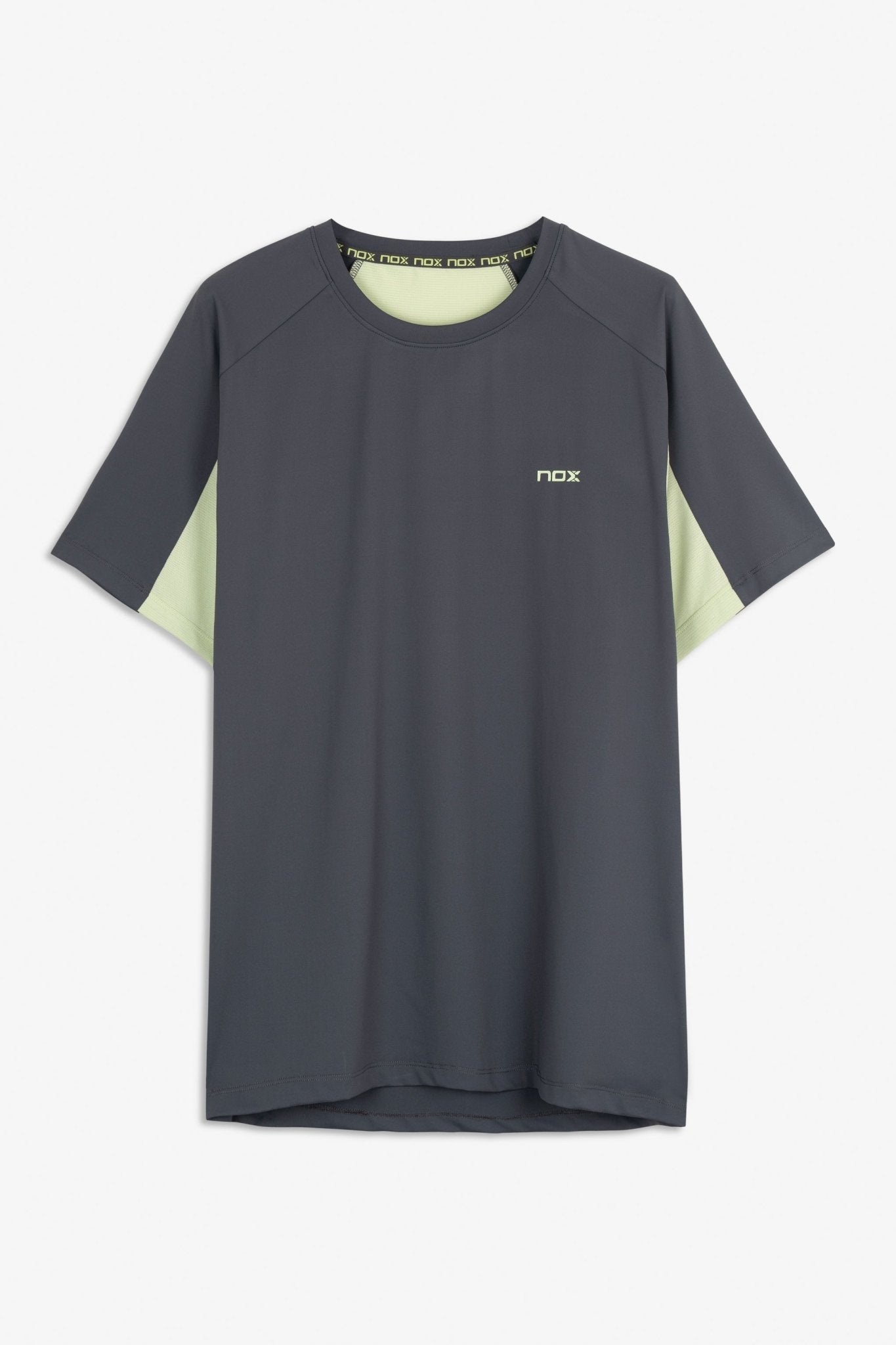 Esta camiseta presenta un elegante diseño en color gris carbón con detalles en tono claro en las mangas y el logotipo de NOX en el pecho. Con un estilo minimalista y sofisticado, es la elección perfecta para quienes buscan un look profesional y cómodo en la pista.