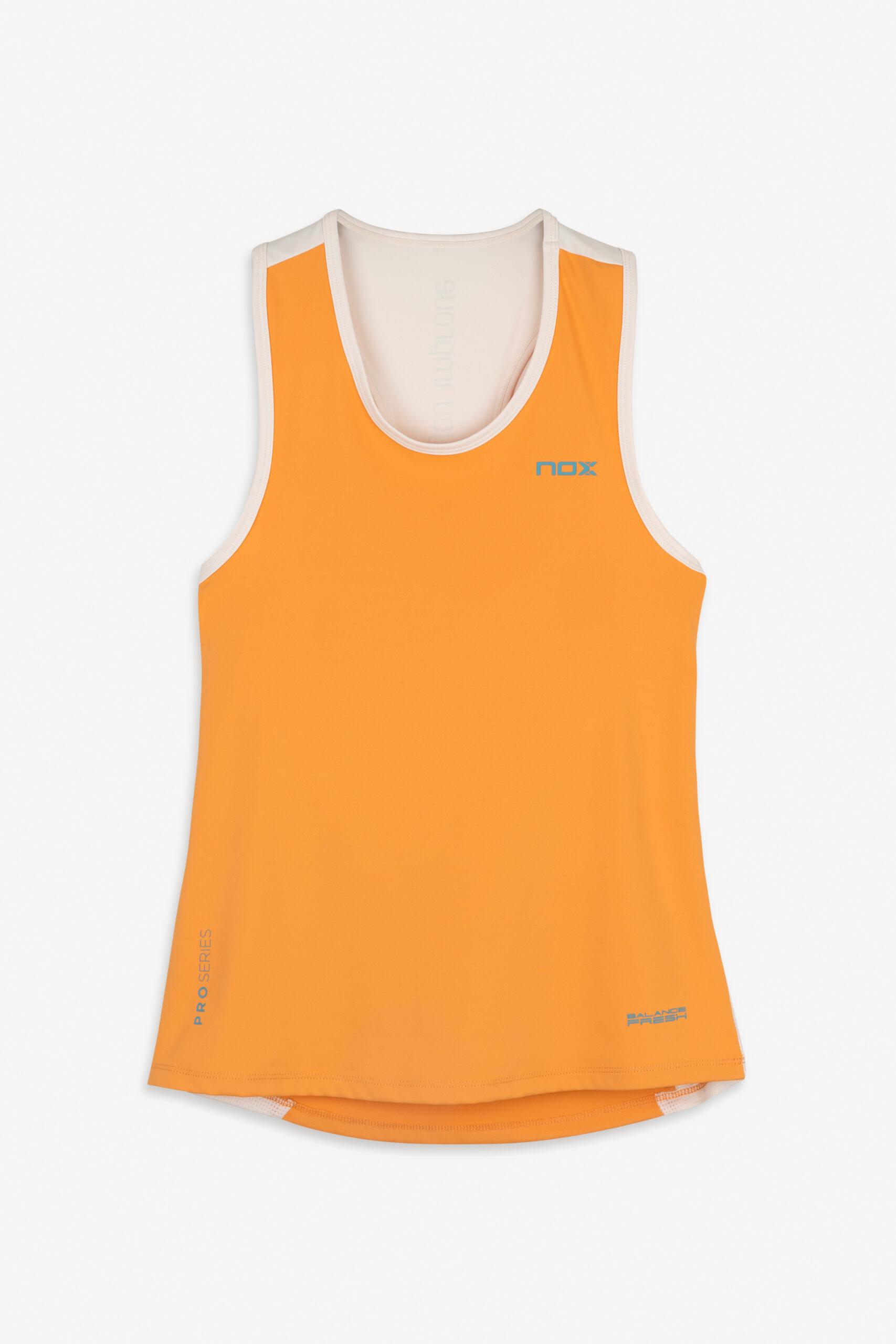 Dale un toque de energía a tu juego con la camiseta de tirantes para mujer PRO Mock Orange Degraded de NOX. Su llamativo color la convierte en la opción perfecta para jugadoras que buscan destacar dentro y fuera de pista.