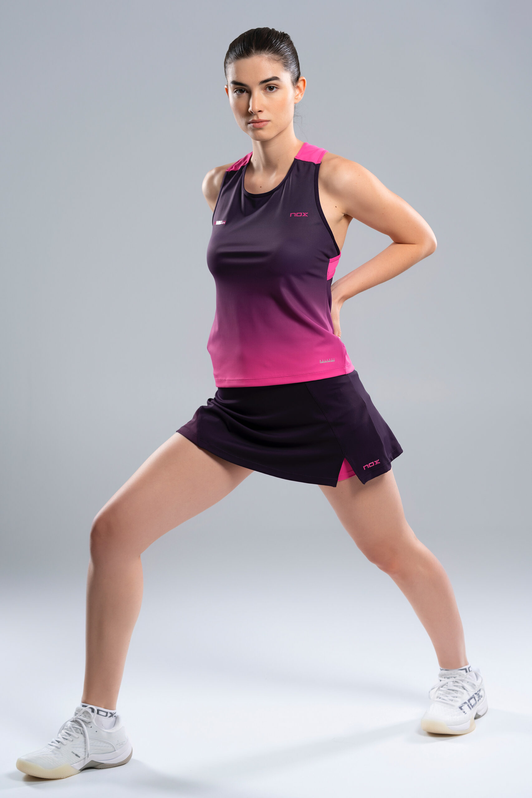 La falda de pádel NOX para mujer combina diseño moderno y funcionalidad para acompañarte en cada punto del partido. Confeccionada en color morado y detalles en contraste, aporta un toque deportivo y actual a tu equipación.