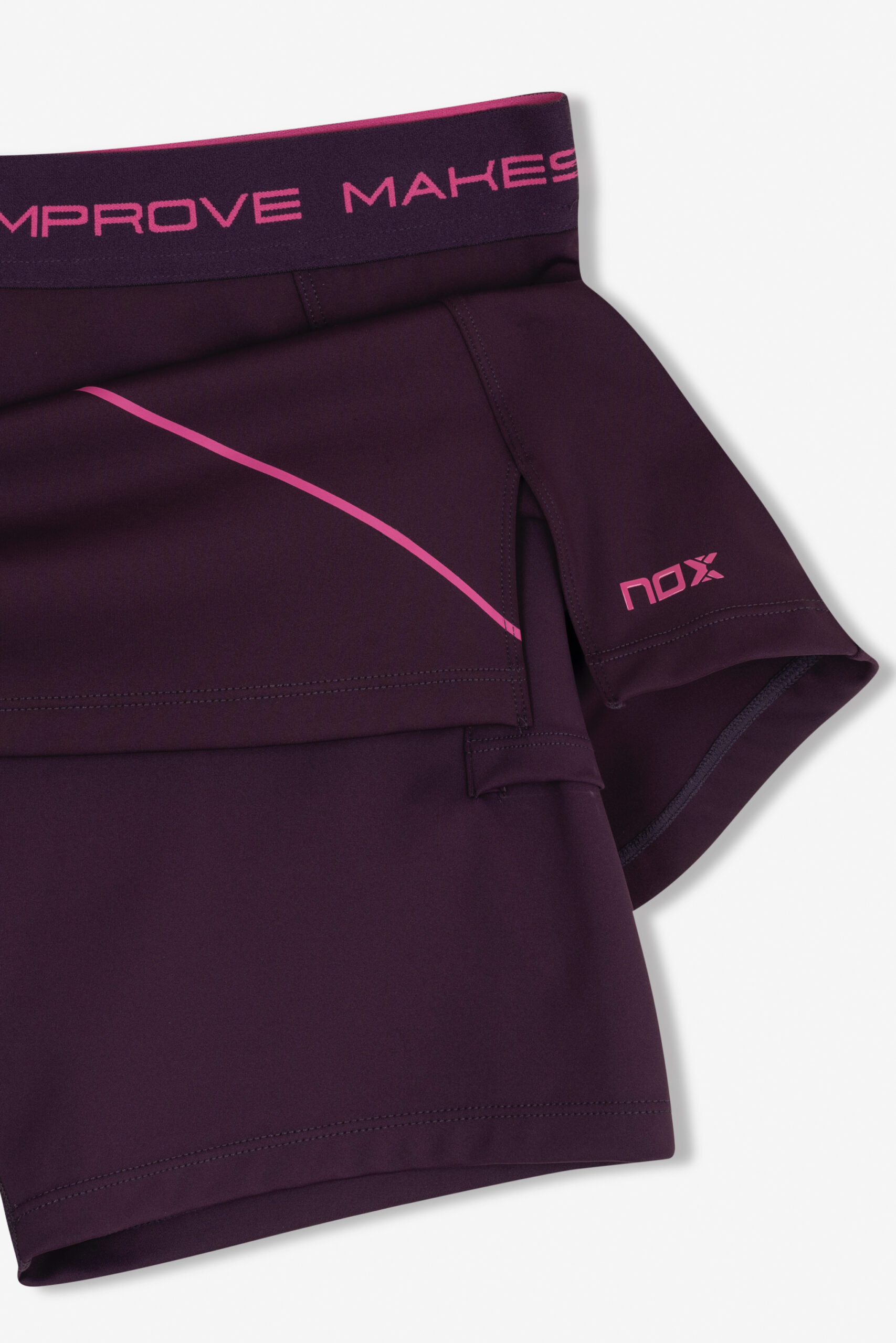 Diseñada para ofrecer comodidad y estilo en cada partido, la falda de pádel NOX para mujer destaca por su color morado con detalles en contraste que le dan un toque moderno y funcional.