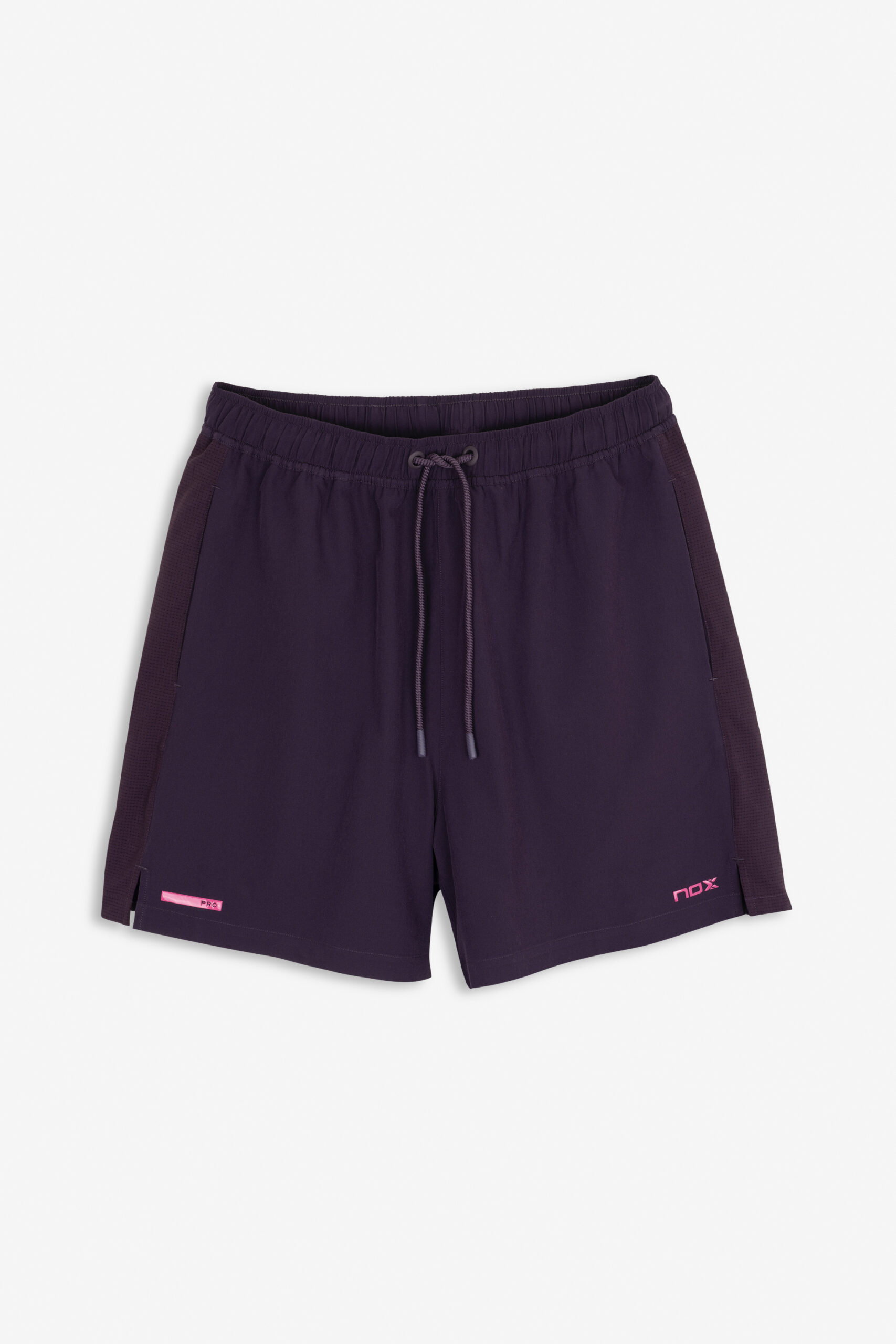 Dale un toque distintivo a tu equipación con el pantalón corto técnico NOX en color morado, una prenda diseñada para combinar innovación, confort y rendimiento en pista.