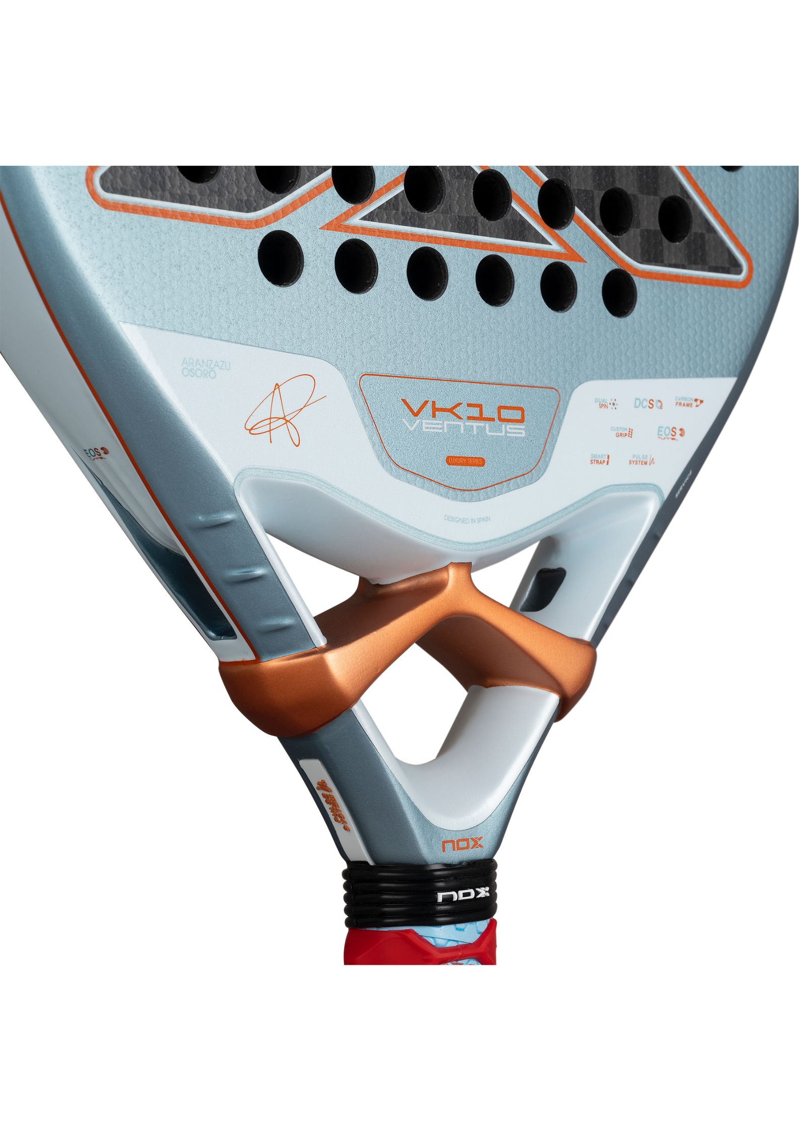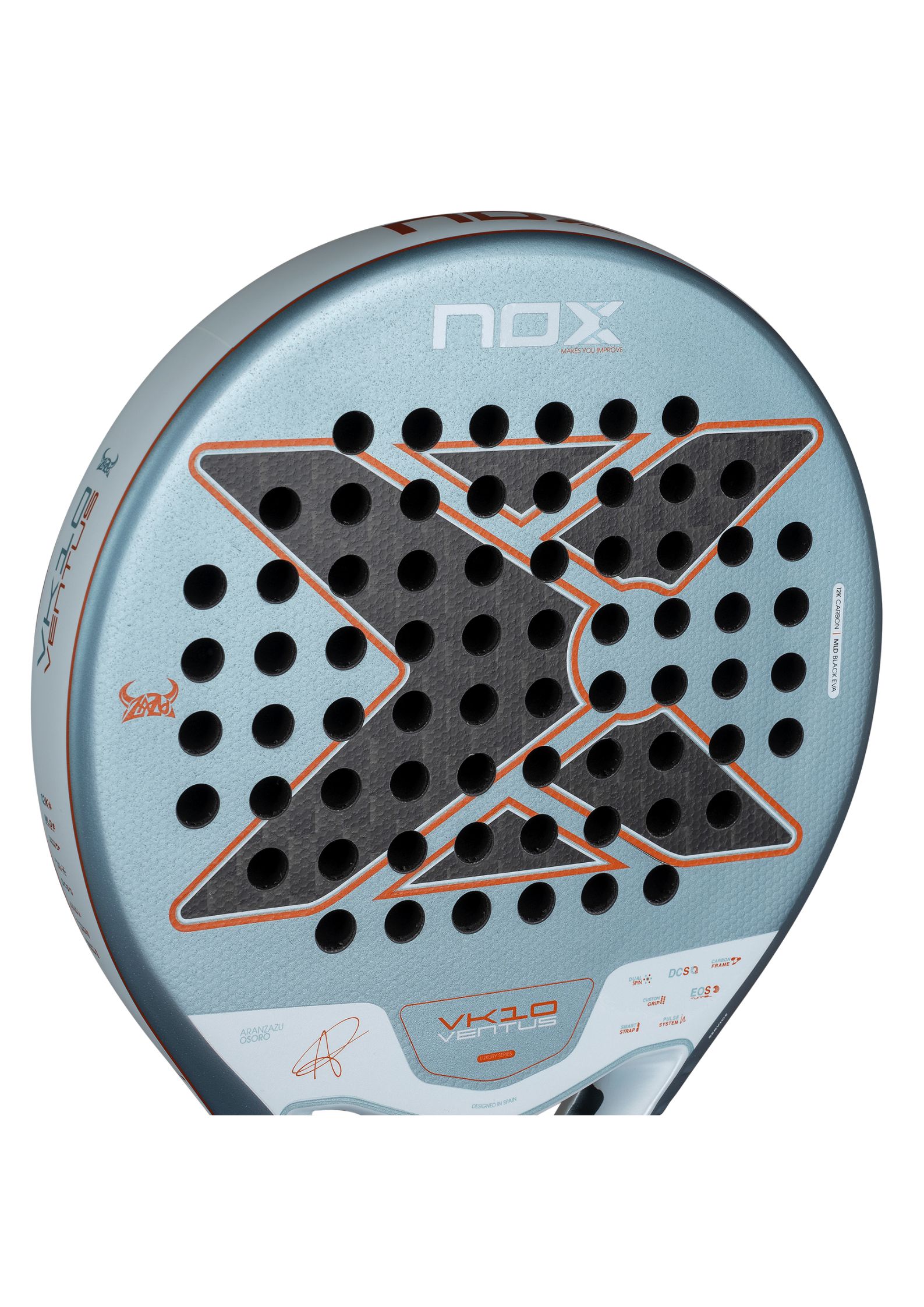 La VK10 Ventus 12K Control, diseñada en colaboración con Aranzazu Osoro «la Vikinga», está pensada para jugadores que luchan cada punto con intensidad y buscan dominar la pista con inteligencia y precisión. Incorpora el nuevo molde de la colección 2026 de palas Luxury, que mejora la aerodinámica y el rendimiento general.